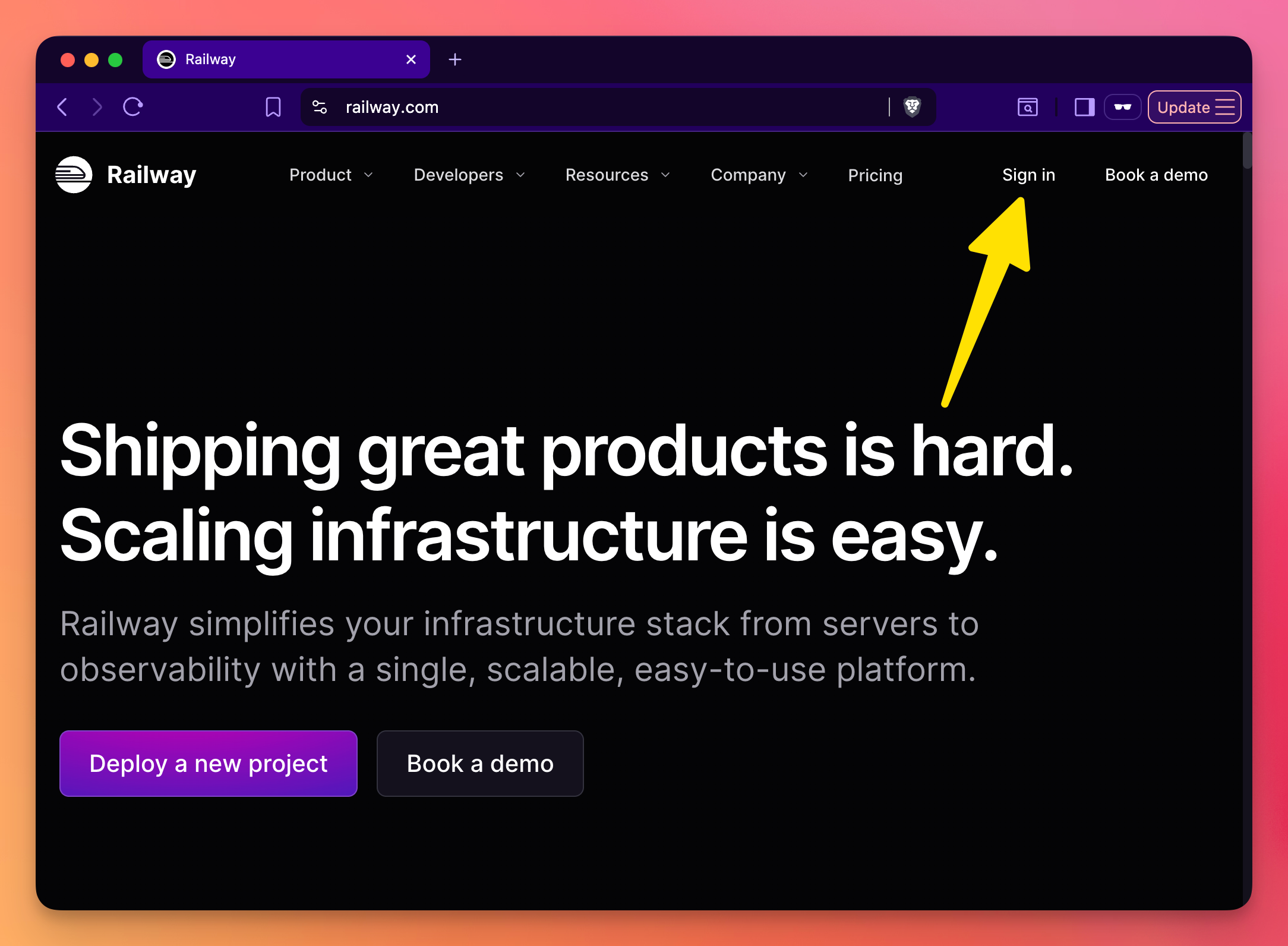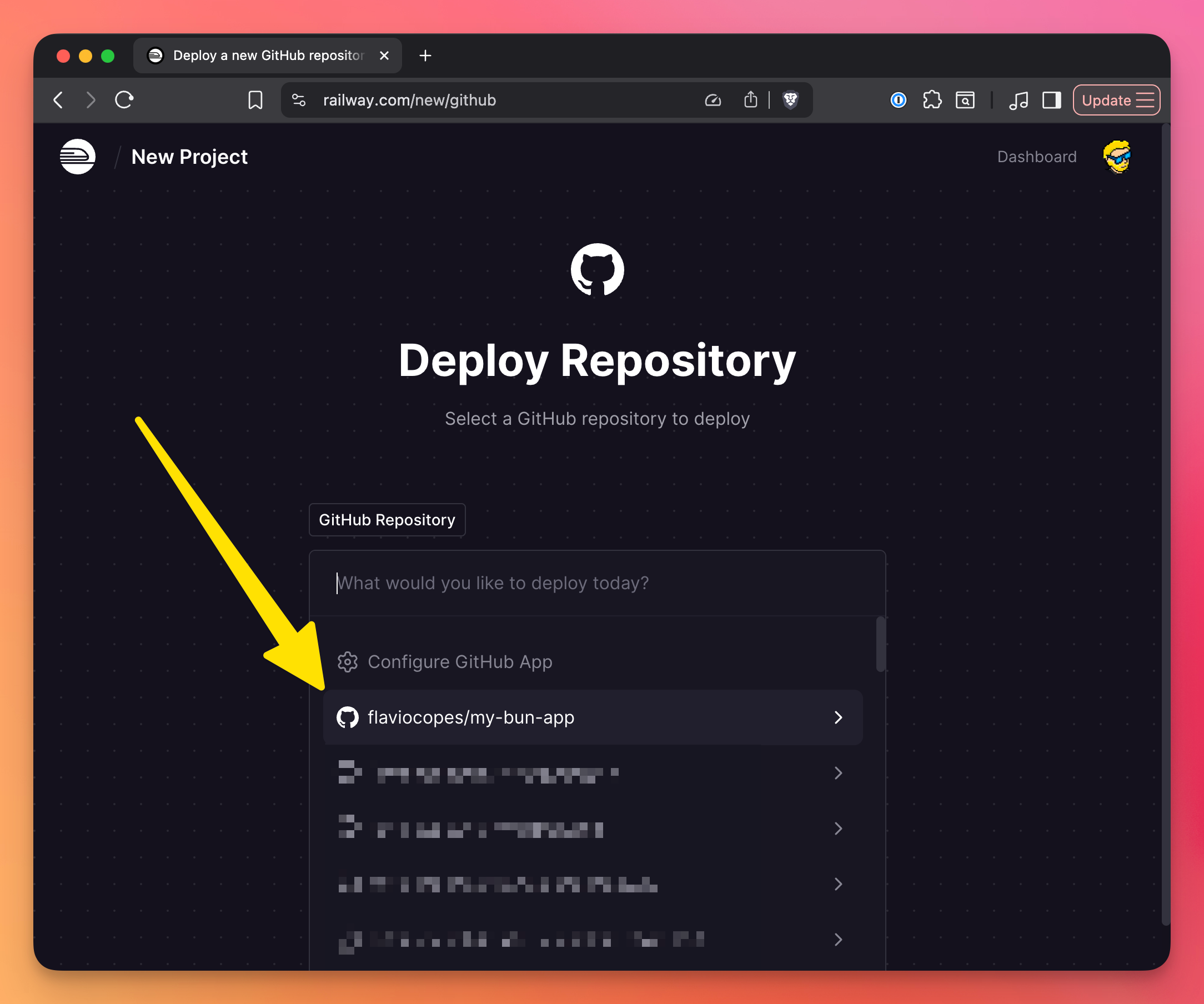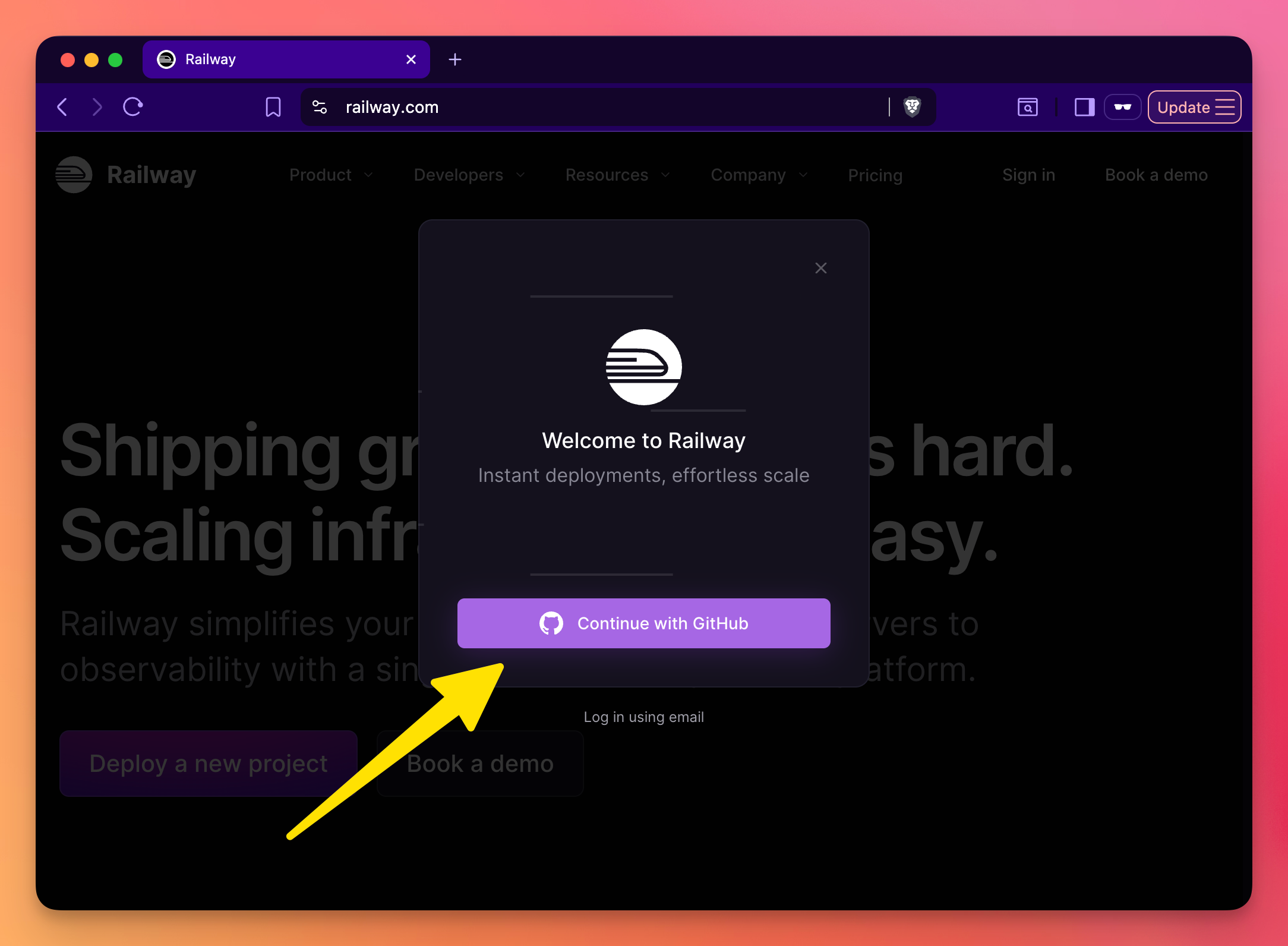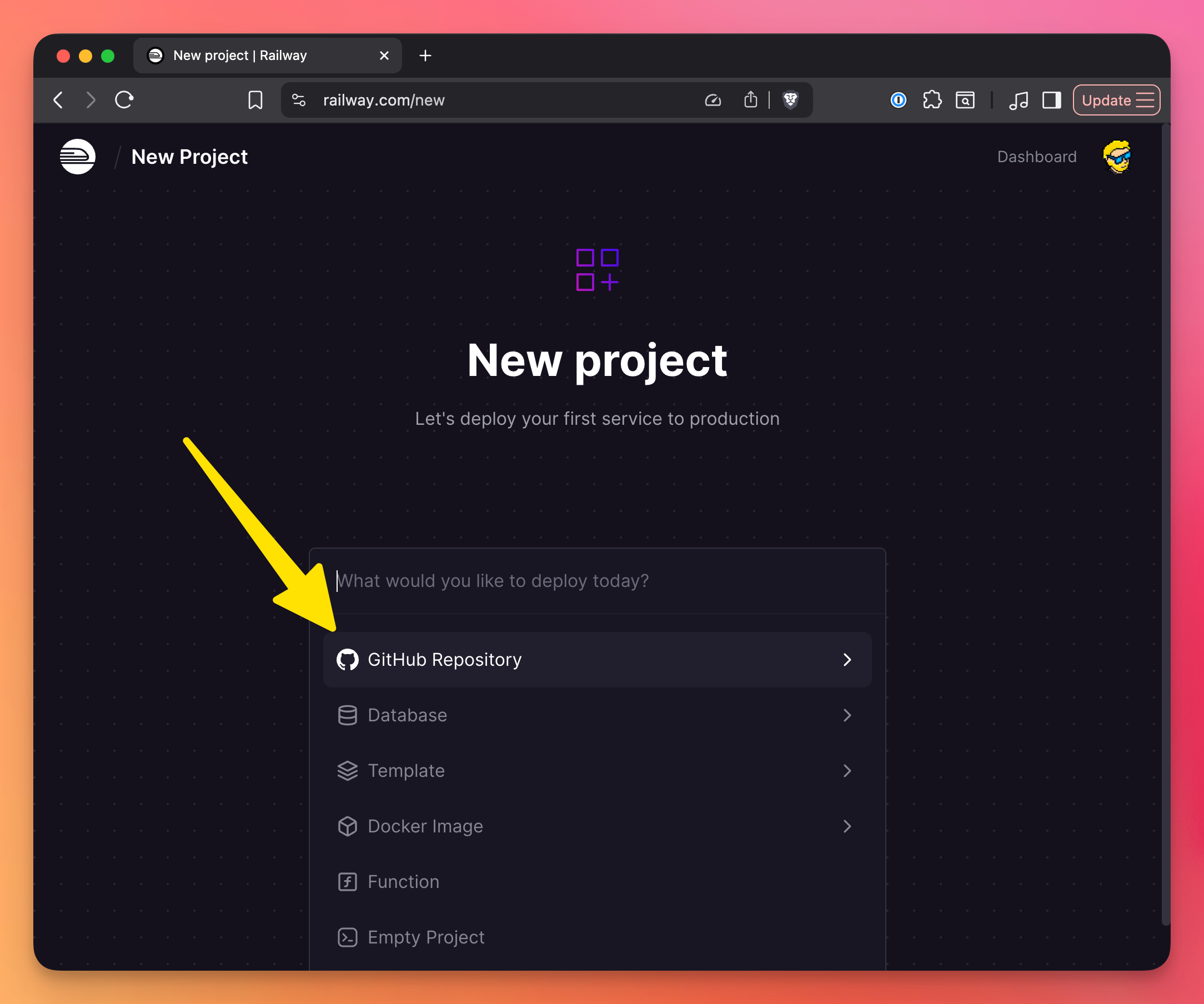 Go to railway.com (referral link!) and sign up with GitHub. That’s it. No credit card required to start.