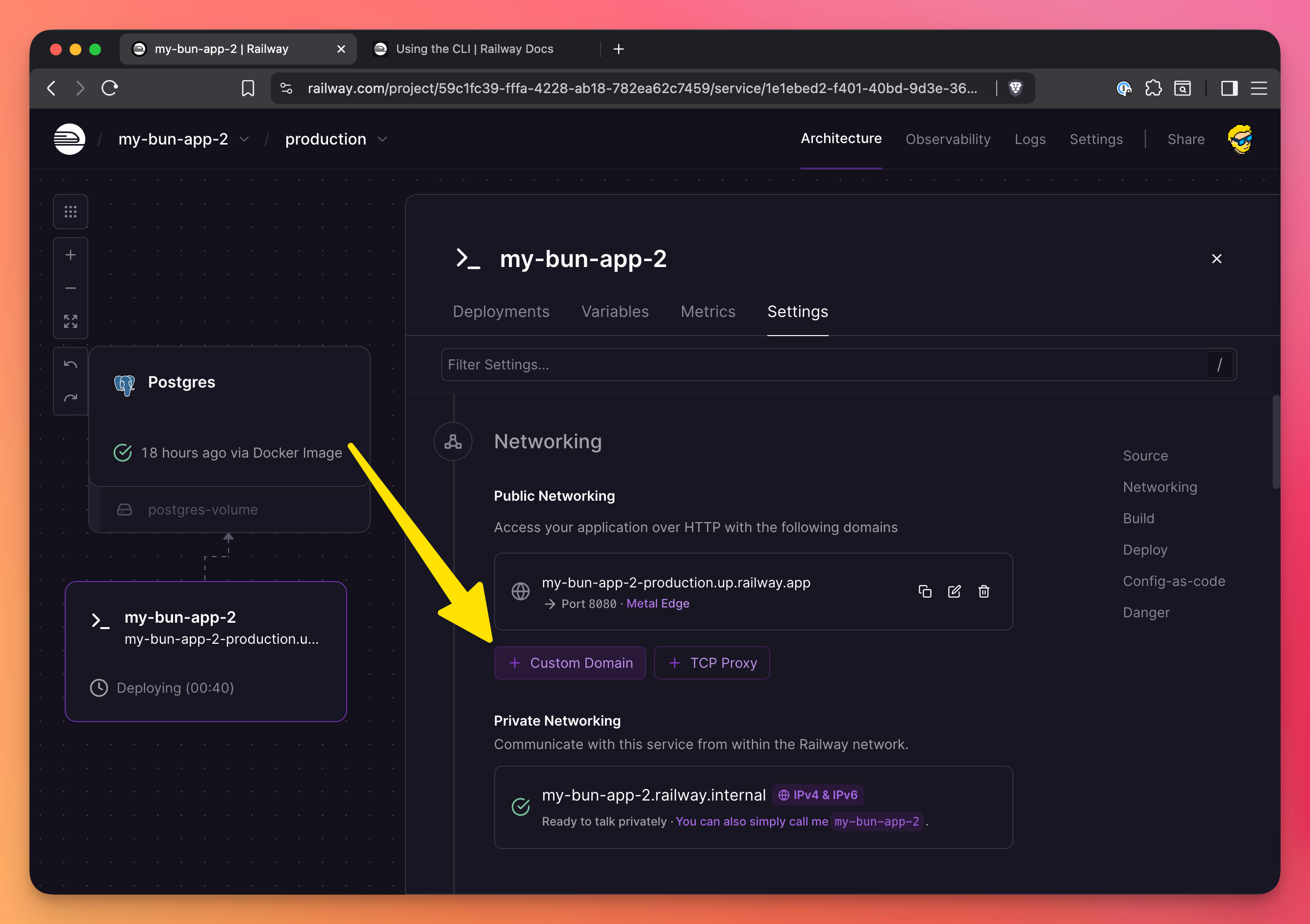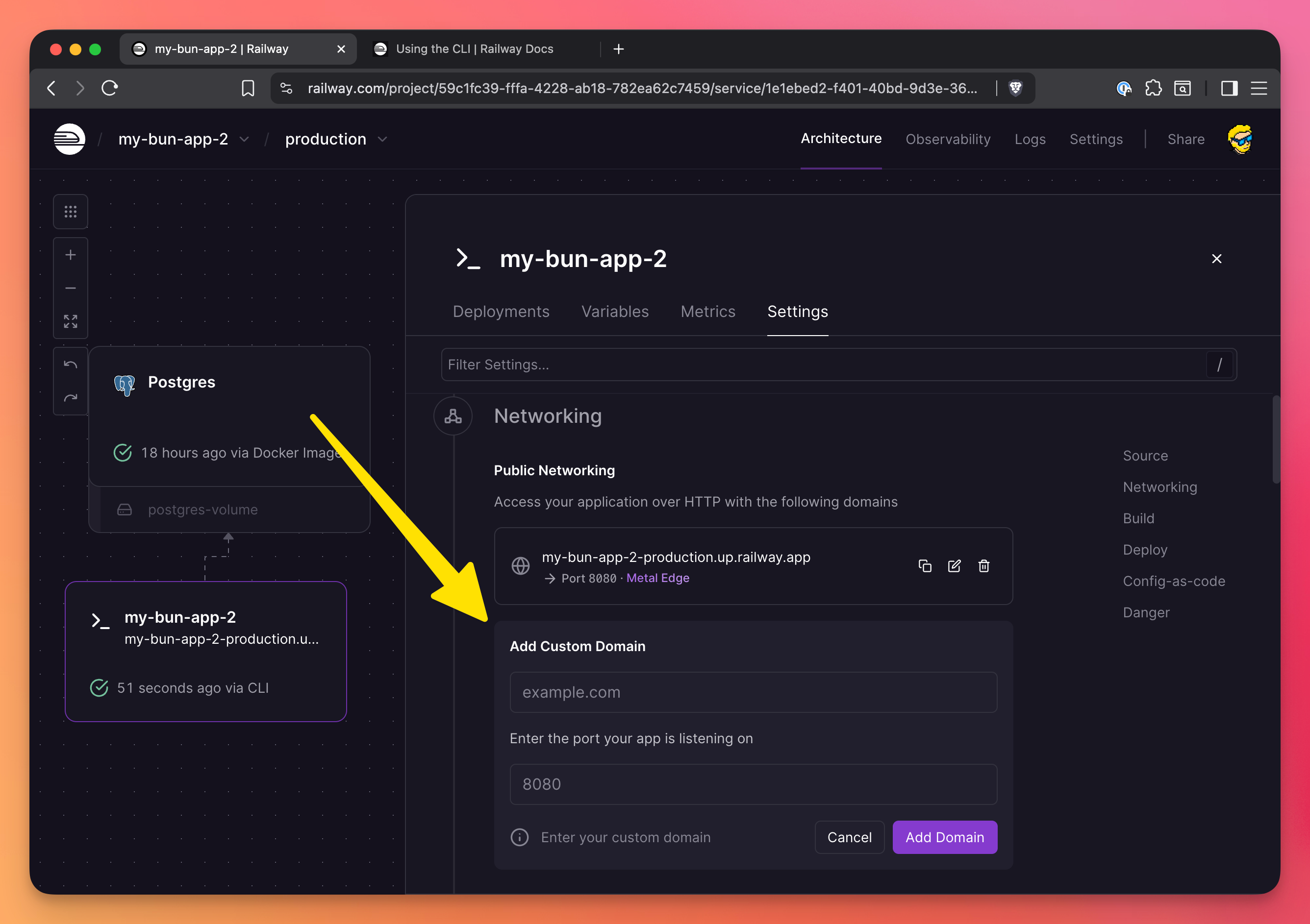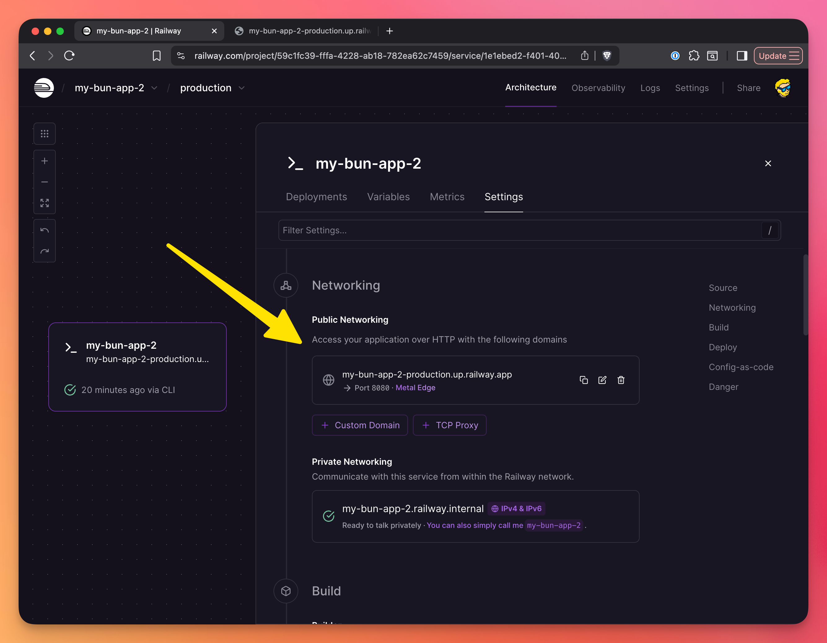 Railway gives you a .up.railway.app domain by default, but you can add your own custom domain.