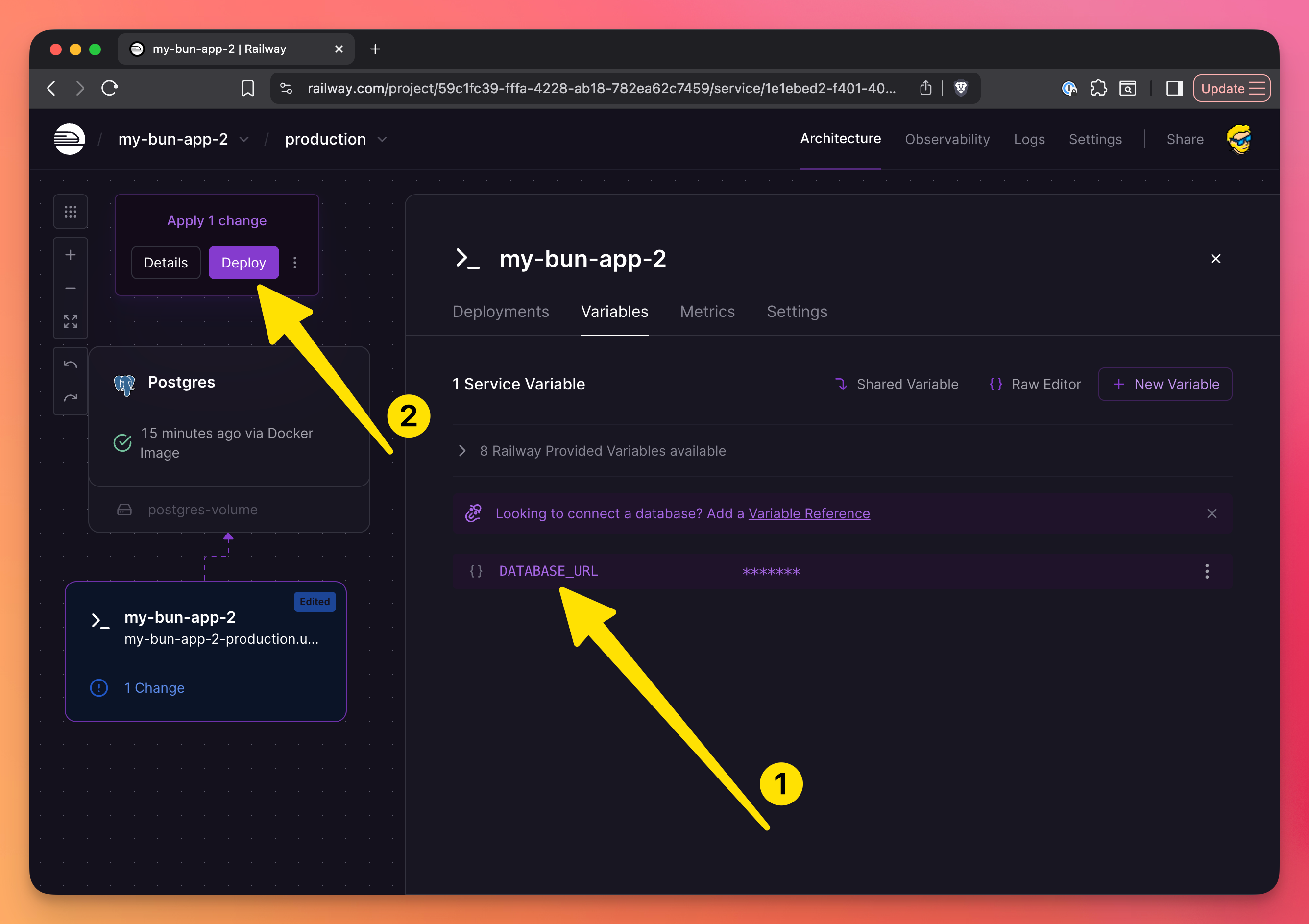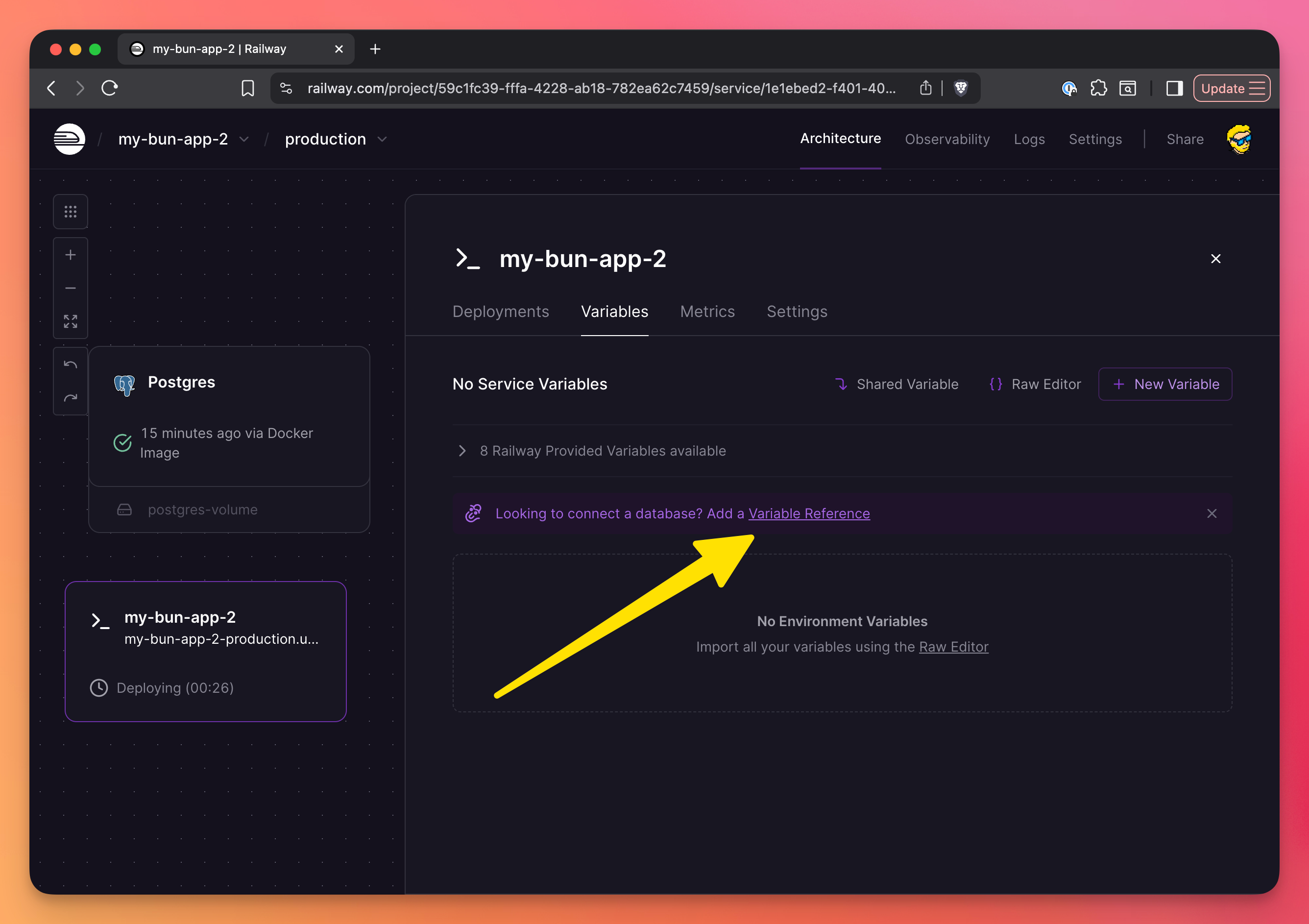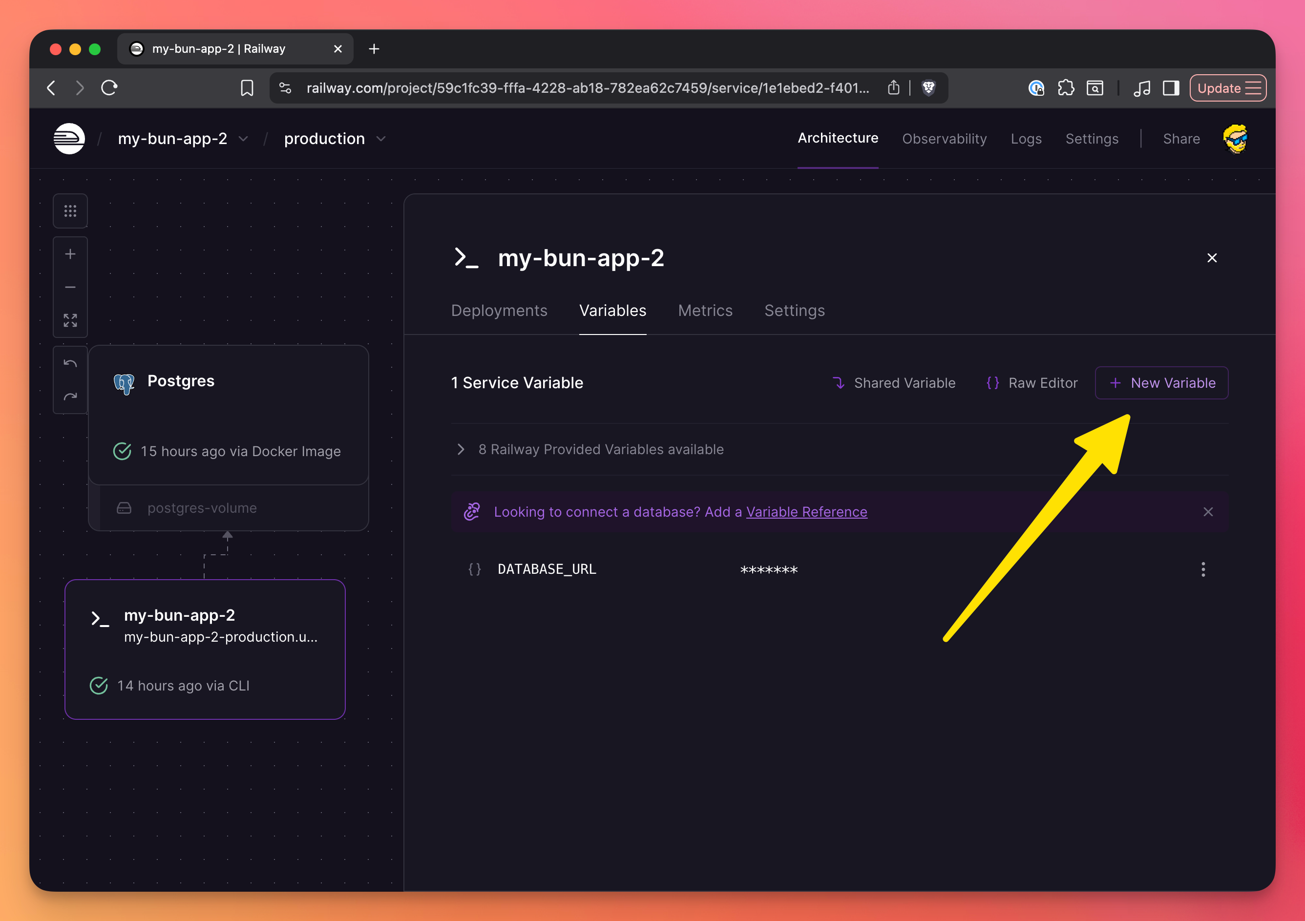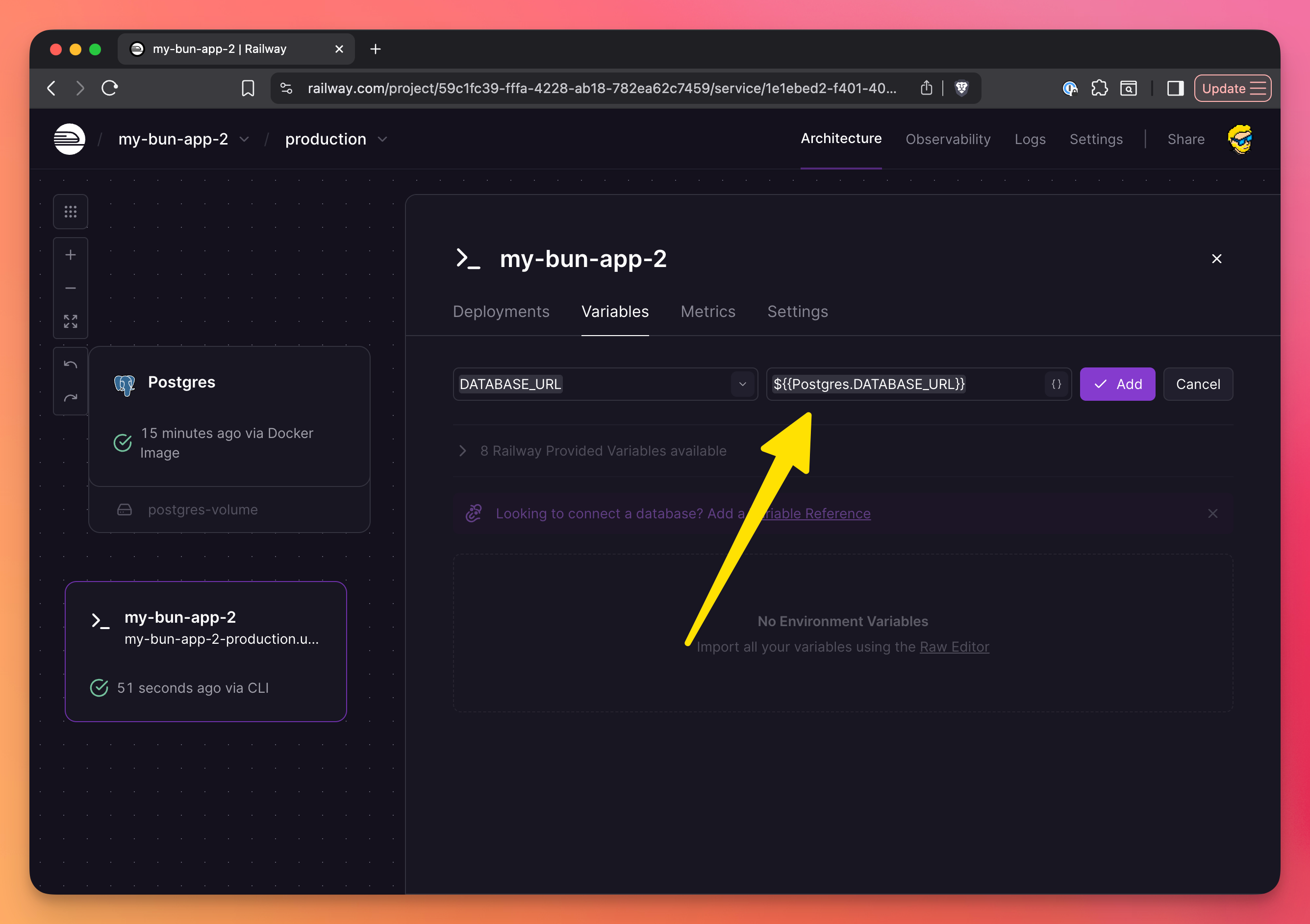 You can add your own variables, or reference variables set by Railway or other services, like we did before with DATABASE_URL.