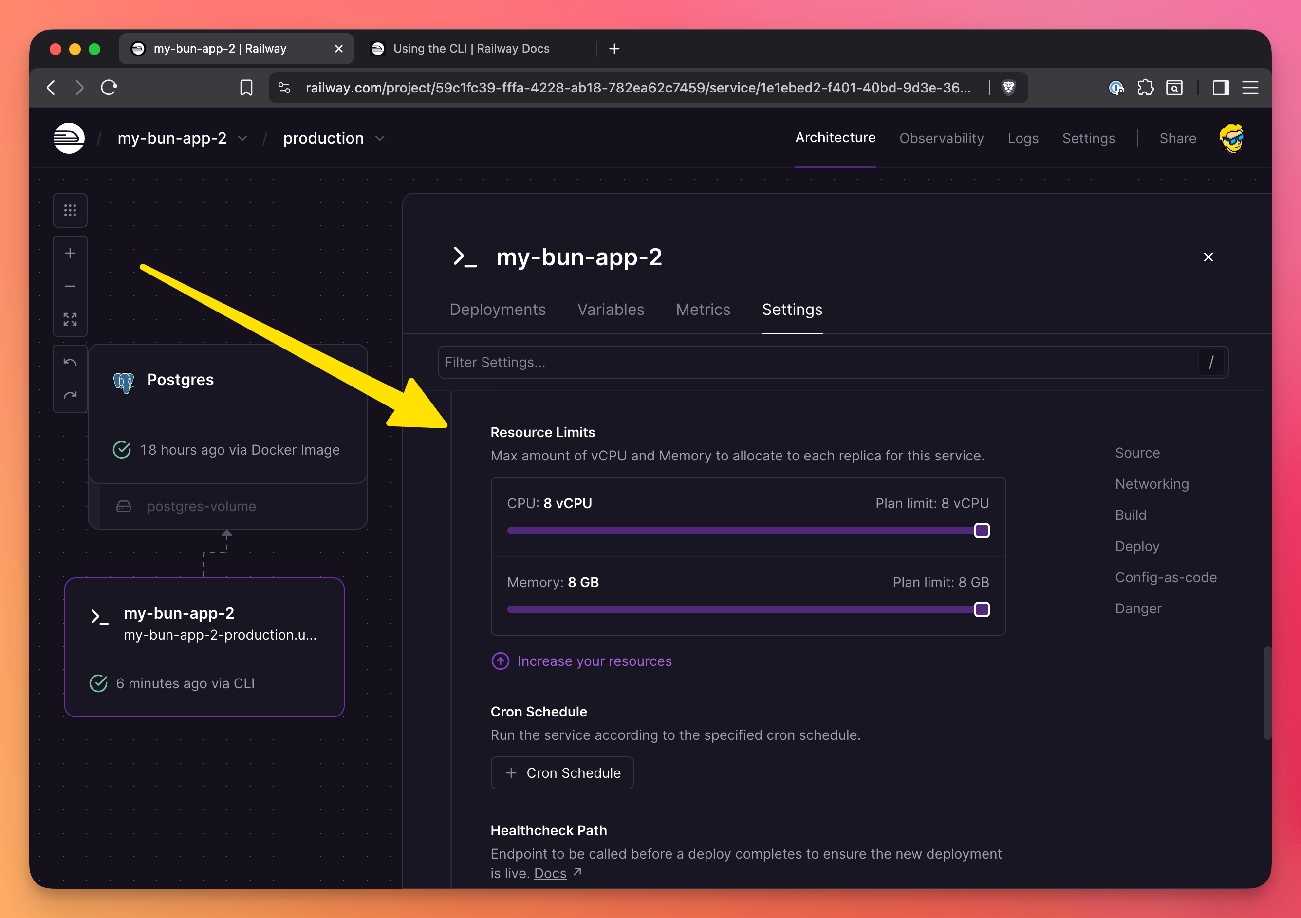 By default, Railway gives your service reasonable resources. But you can adjust CPU and memory limits in the service settings if needed.