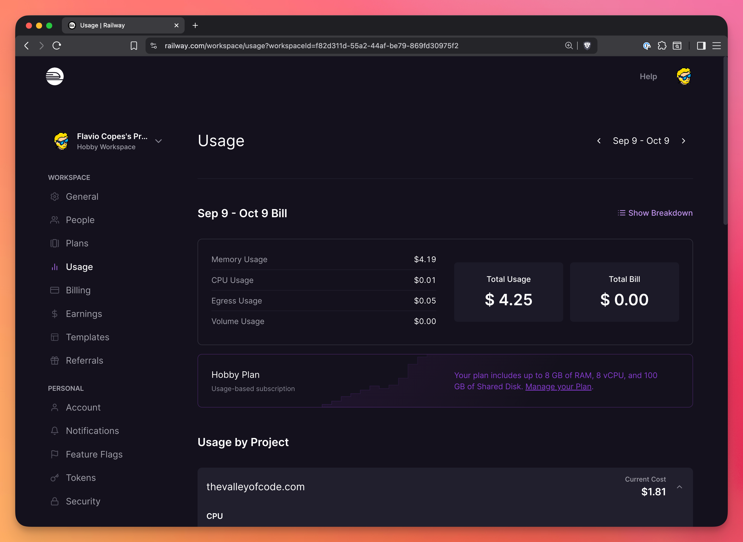 The pricing is fair. You pay $5/month and get $5 of usage credit. No minimum spend, no waste. You’re not paying for resources you don’t use.